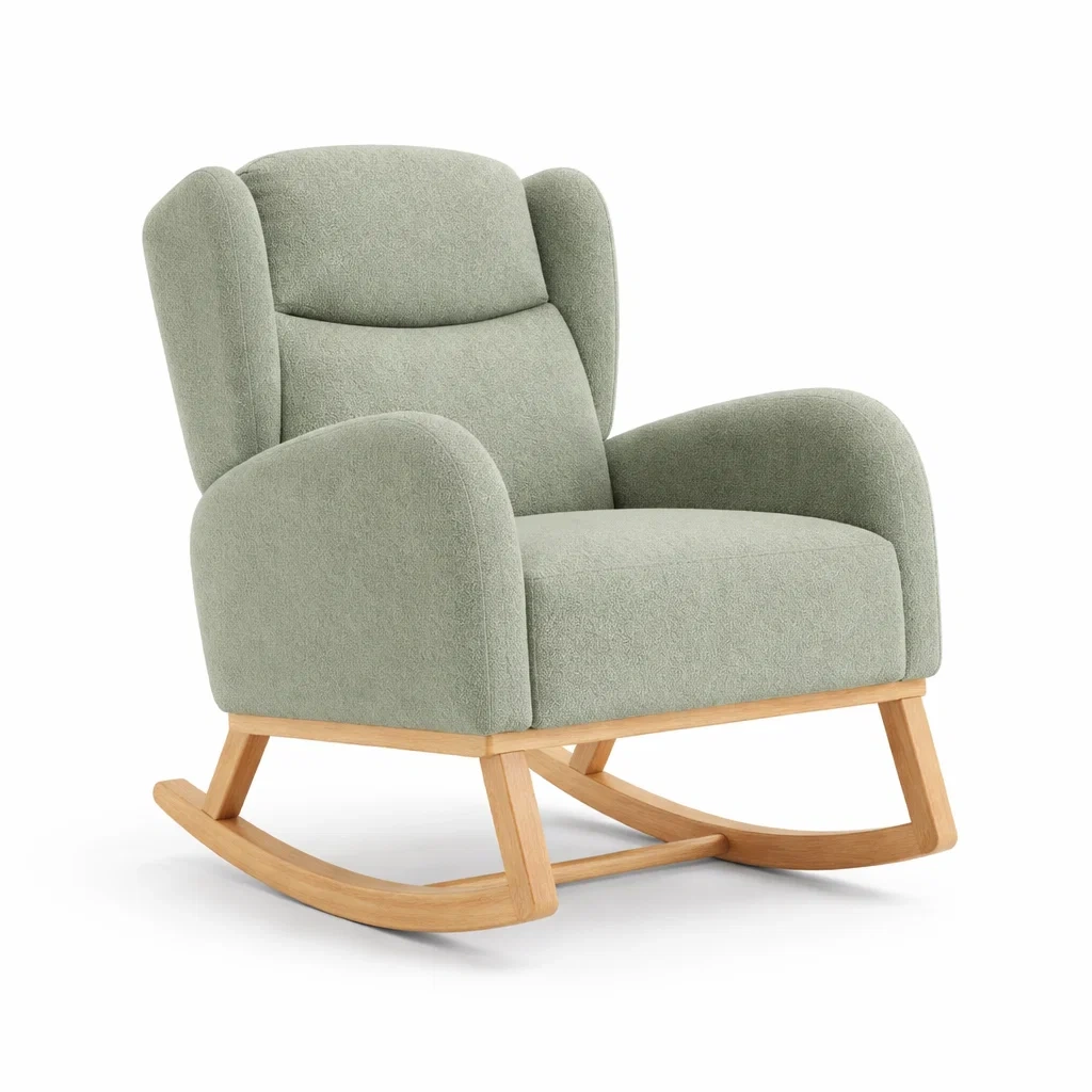 Schaukelstuhl aus holz und grünem stoff