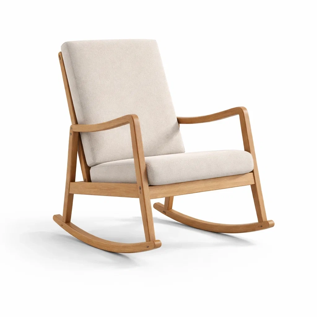 Schaukelstuhl holz mit polyesterpolsterung