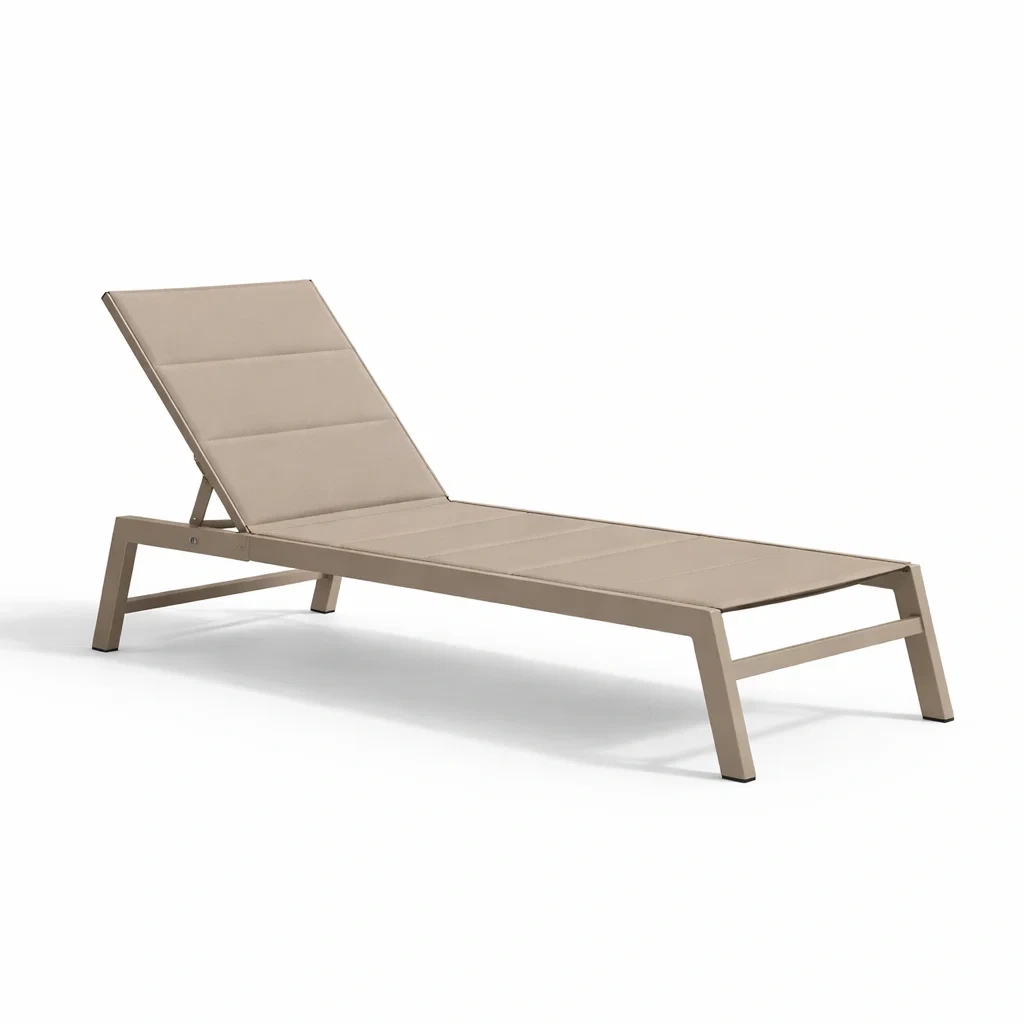 Diese Sonnenliege verfügt über einen stabilen Aluminiumrahmen und einen Bezug aus strapazierfähigem Polyestergewebe.
