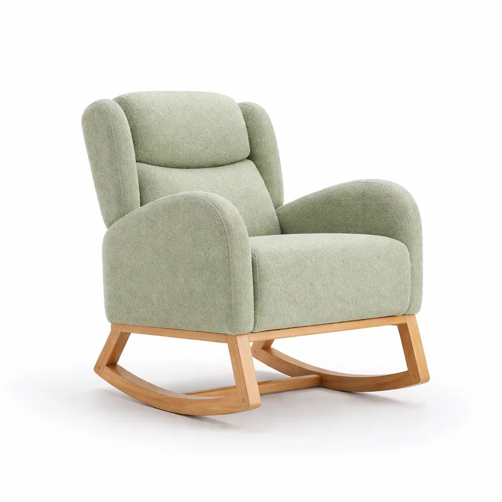 Schaukelstuhl grün mit holzrahmen und polyesterbezug